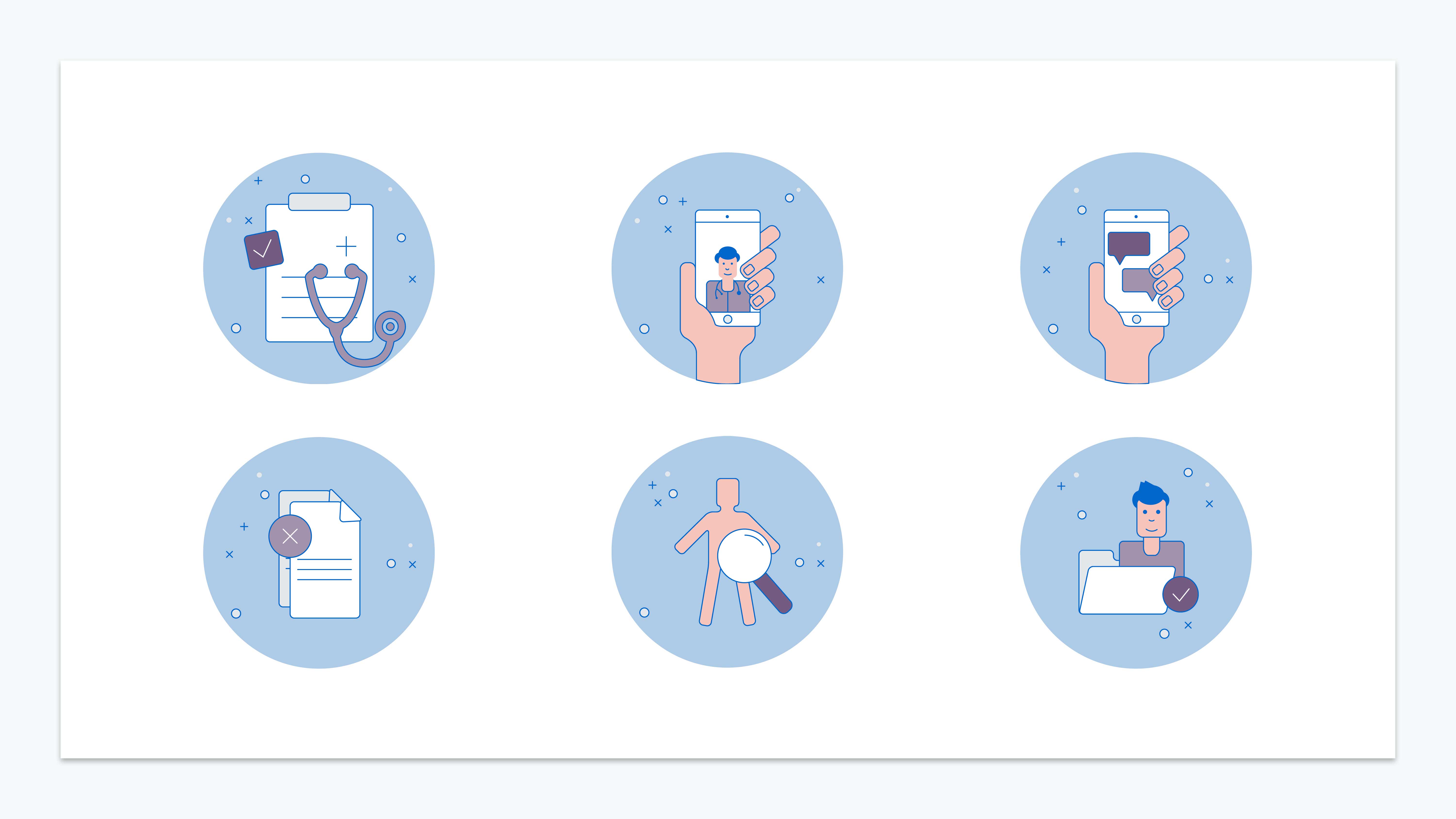 Die Illustrationen sollen den Nutzer an bestimmten Stellen im System anleiten und den klinischen Charakter auflockern. Beispielsweise können somit Pitstops oder Onboarding-Bereich auf simple Art verdeutlicht werden und grenzen sich somit klar, vom Anamnese Bereich ab.