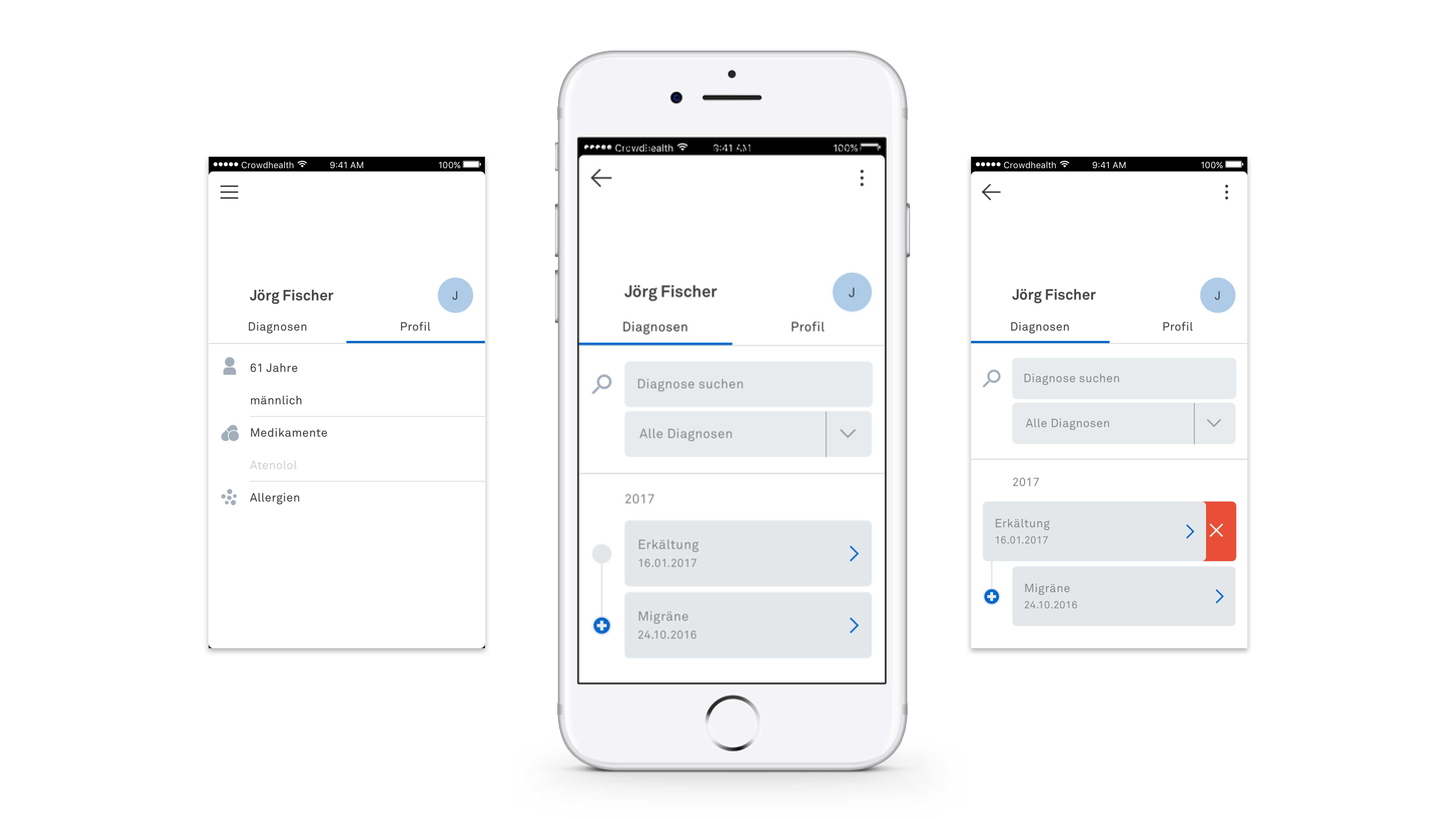 Innerhalb der Patientenakte werden alle Diagnosen, die durch die Applikation oder durch einen Arzt gestellt wurden gesammelt und archiviert. Somit hat der Patient jederzeit Zugriff auf seine Akte und hat diese immer dabei, falls sein Hausarzt einmal in Rente gehen sollte.