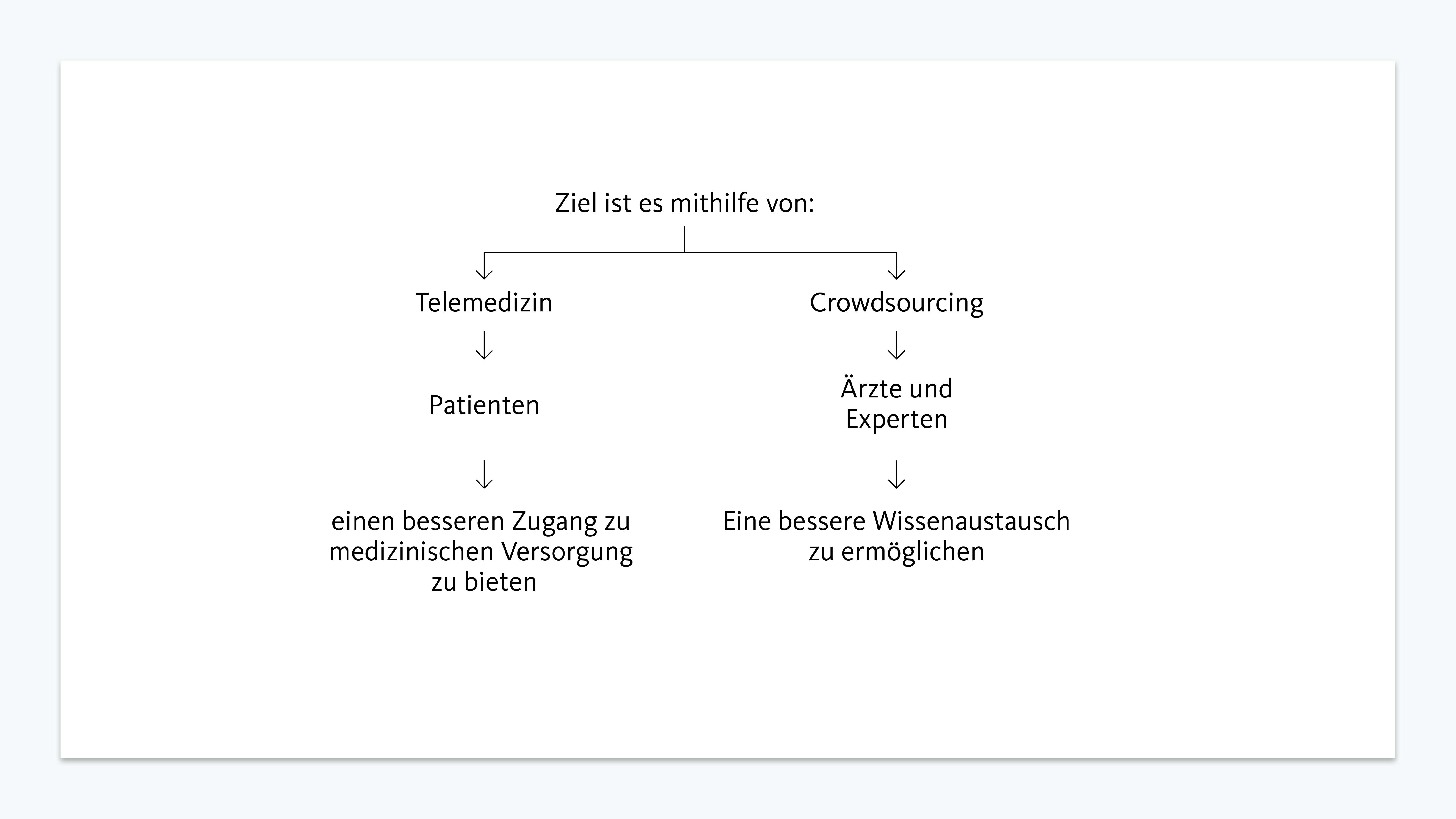 Ziel ist es Ärzte und medizinische Experten innerhalb einer Gruppe/Crowd zusammenzubringen, um effizienter arbeiten und sich besser austauschen zu können. Außerdem soll die Telemedizin den Patienten einen besseren Zugang zu einer medizinischen Versorgung.