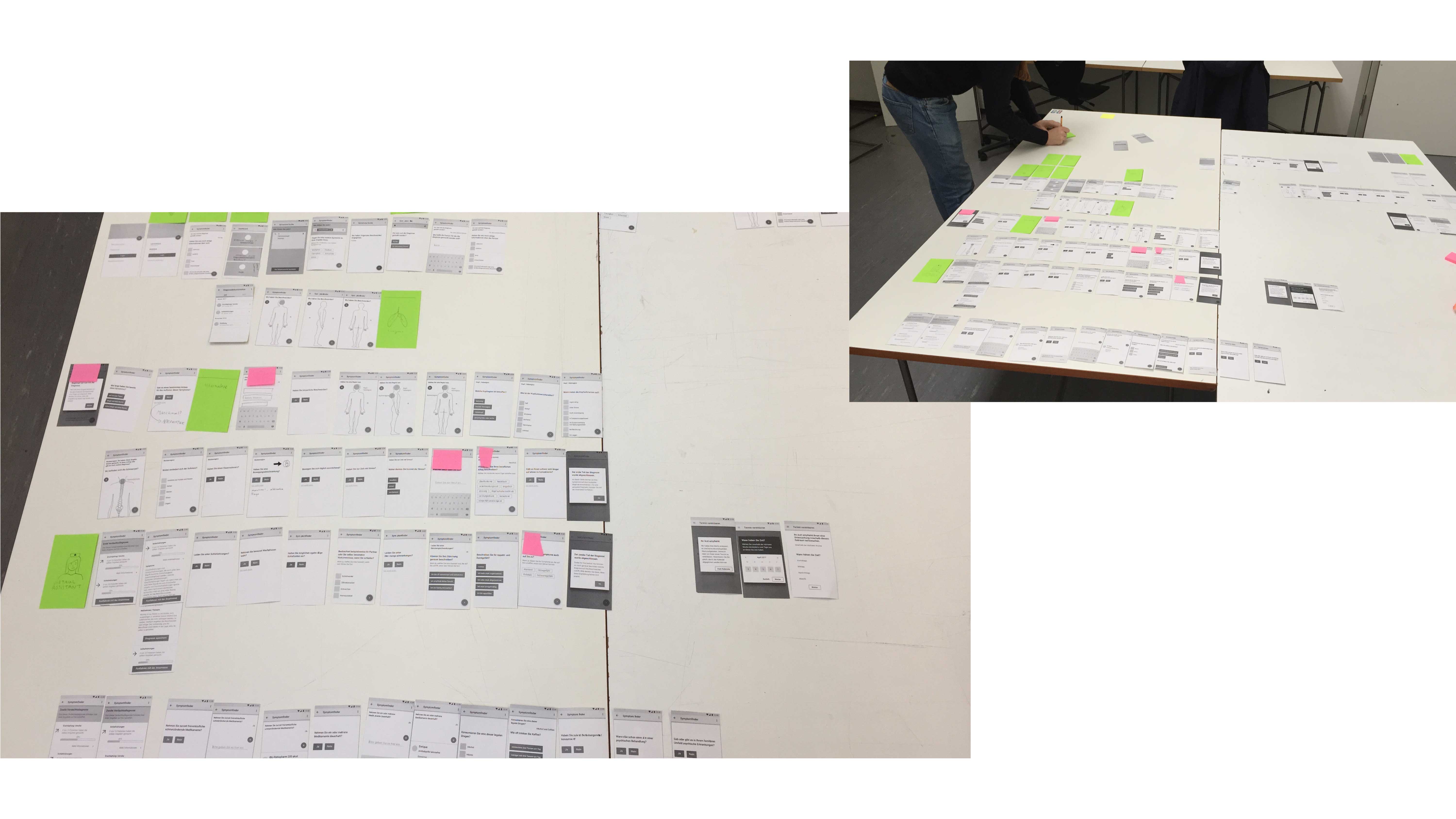 Die Wireframes dienten als Grundgerüst für die Anordnung der elementar wichtigen Elemente, die wir innerhalb der Recherche identifiziert haben.