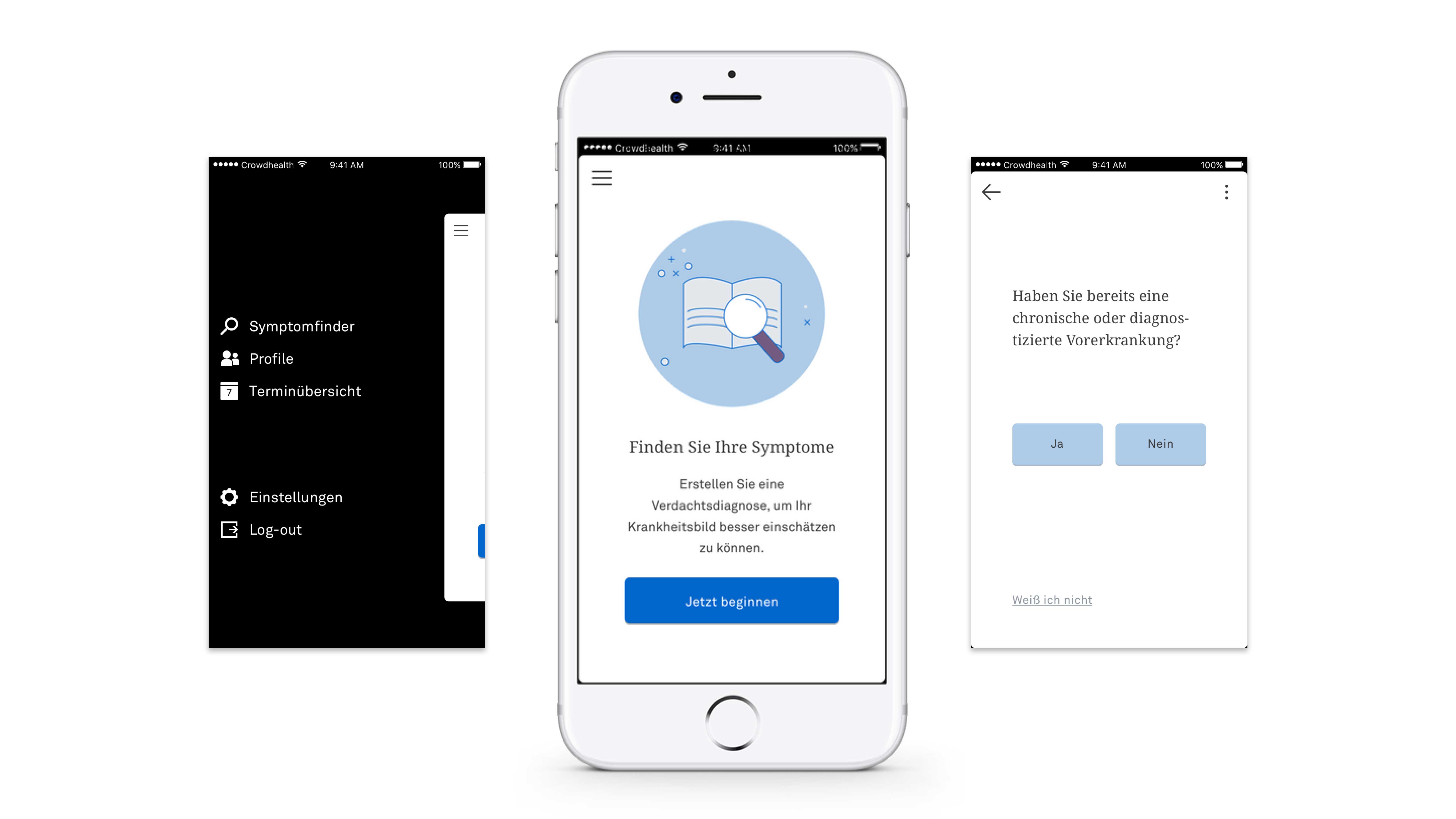 Die Applikation bietet drei Verdachtsdiagnosen zu den Angaben des Patienten an und kategorisiert diese nach Wahrscheinlichkeit. Dem Patienten wird die Wahrscheinlichkeit dieser Diagnose und eine Empfehlung, wann er einen Arzt aufsuchen sollte, aufgezeigt. Außerdem hat der Patient bei schwerwiegenden Diagnosen sofort die Möglichkeit einen Arzttermin zu vereinbaren.