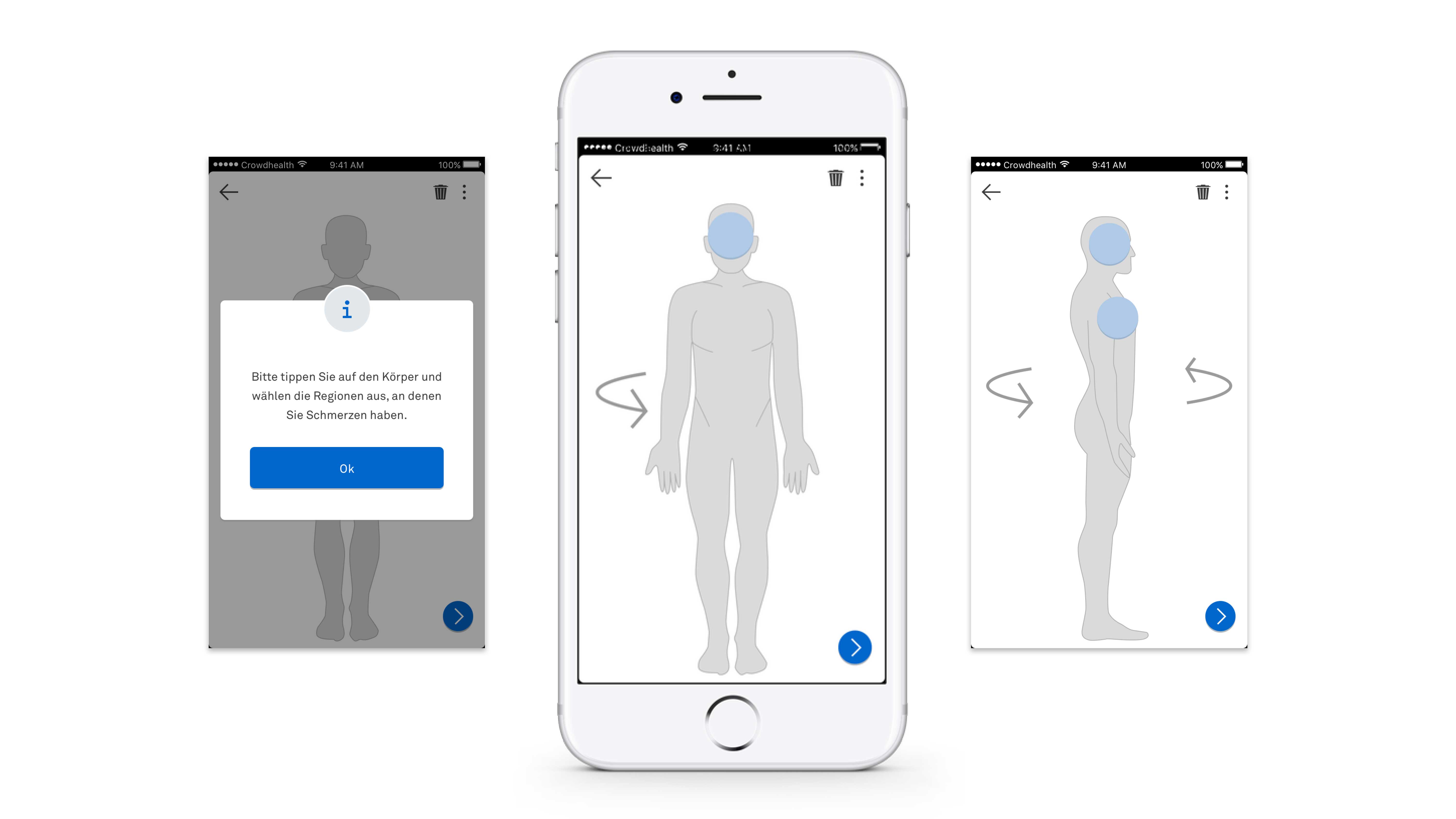 Die Körperansichten sollen dem Nutzer helfen, seine Beschwerden besser eingrenzen zu können. Gerade bei Patienten, die sich schwertun ihre Beschwerden/Symptome in Worte zu fassen, kann die Körperansicht helfen die Schmerzen besser eingrenzen zu können.